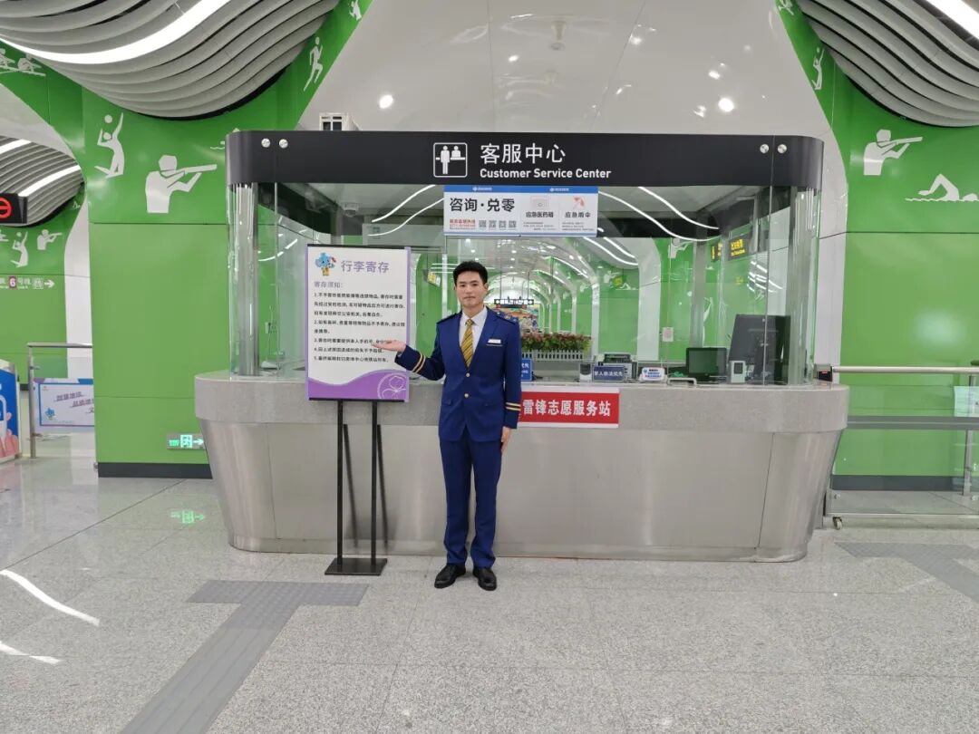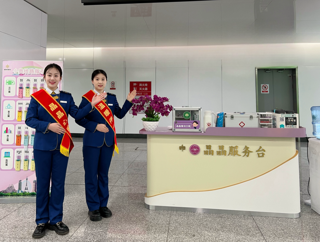 奧體中心站設置晶晶服務臺,擺放熱水壺、一次性水杯、移動充電寶、醫(yī)療箱、晶晶魔法口袋百寶箱,為乘客提供優(yōu)質(zhì)高效的服務。除此之外,客服中心提供行李臨時免費寄存服務,車站提供衛(wèi)生間引導服務,乘客使用便民服務卡可至6/14號線站臺使用衛(wèi)生間,為乘客出行提供便利,提高乘客滿意度。